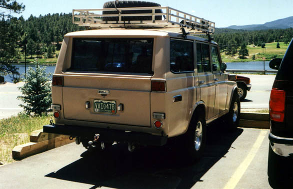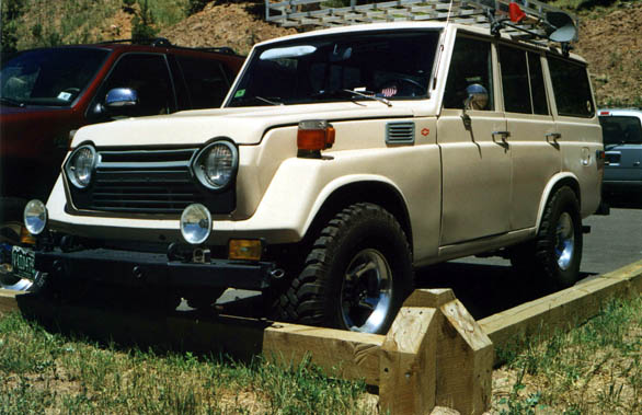 This is one of the nicest pigs I have EVER seen. These photos were taken on July 4th, 2000 at Evergreen Lake. The roof liner was some kind of silvery reflective stuff, and below it the owner had a custom fishing pole rack mounted with a number of fishing poles, so undoubtedly he was fishing at the lake. V8, 33x12.50 BFG M/Ts, alloy wheels, nice roof rack, custom front and rear bumpers, not a spot of rust, just a super clean rig. I left a note under the wiper but never heard back from the owner. Joe Calleja of Colorado Toyota Specialists (a TLCA Associate member and fellow Rising Sun member) told me that he beieved the rig belonged to a fellow named Mario, and that he had worked on the truck before. He told me that if it was the rig he was thinking of, that the V8 was an LT1 out of a Corvette. Too cool!